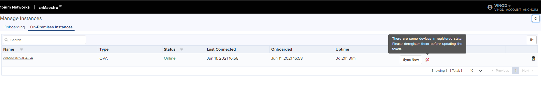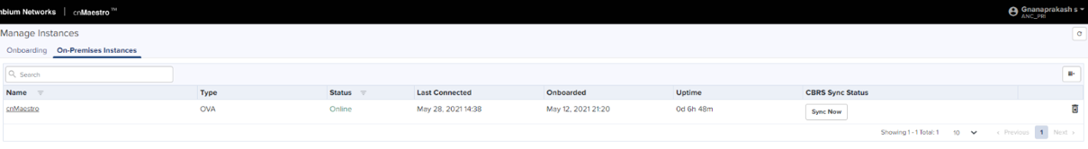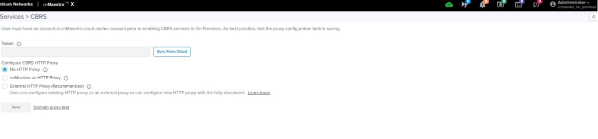 Once On-Premises is connected to the Anchor Account, the user can synchronize CBRS details (SAS ID, Token) to the cnMaestro On-Premises instance to register CBRS devices.