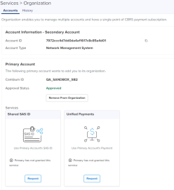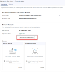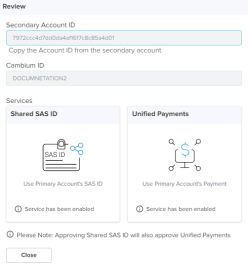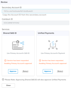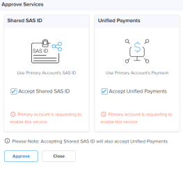 | n | If services such as Shared SAS ID or Unified Payments are active in the Secondary Account, the services need to be disabled from the Secondary Account, and the request must be approved by the Secondary Account administrator.