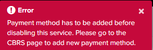 If this happens, the user needs to add new CBRS payment details into the Secondary Account.