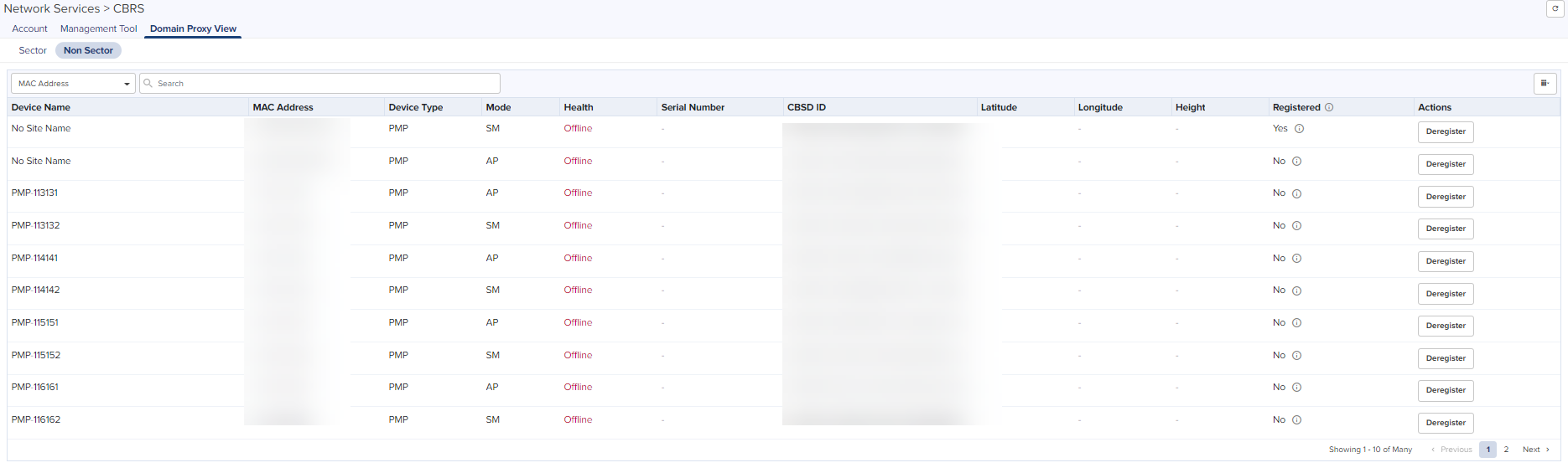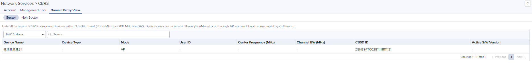 Navigate to Services > CBRS > Domain Proxy View > Non Sector page. |