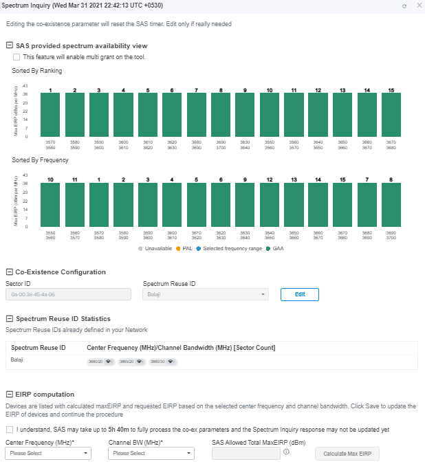 | NOTE Contact Cambium support to disable CBRS operation or to change SAS Vendor. |