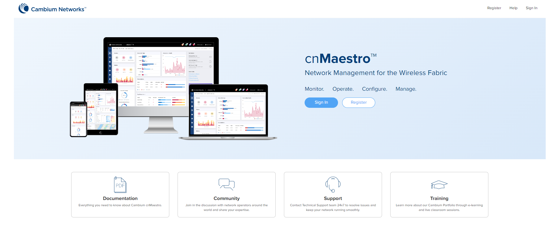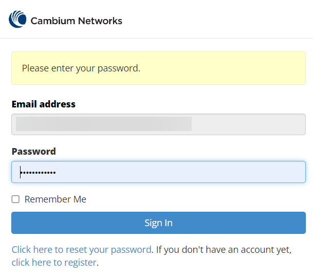 To access cnMaestro, you must create a Cambium Support Center account, which sets your username and password.