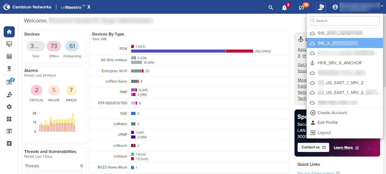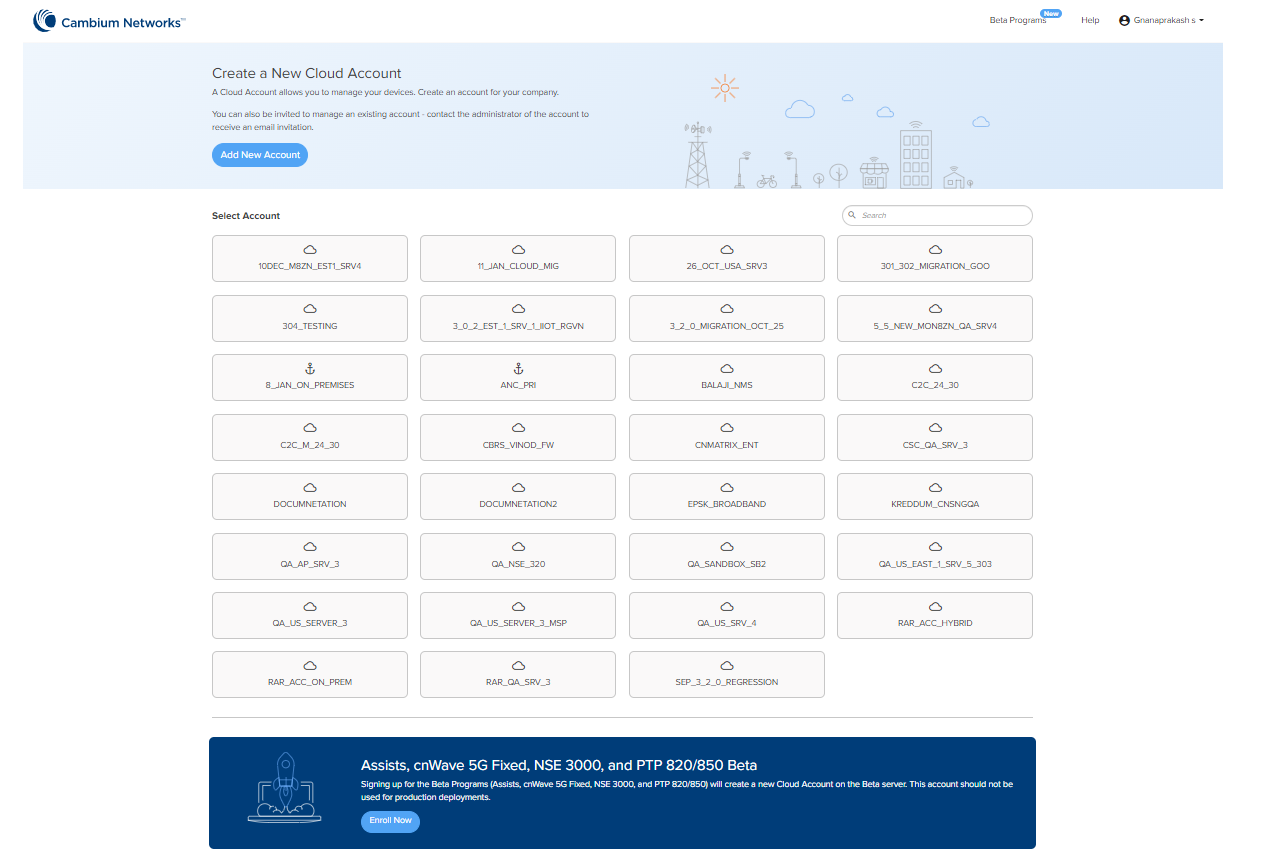 Use the Cambium Support Center account to log on to cnMaestro and create a cnMaestro account.