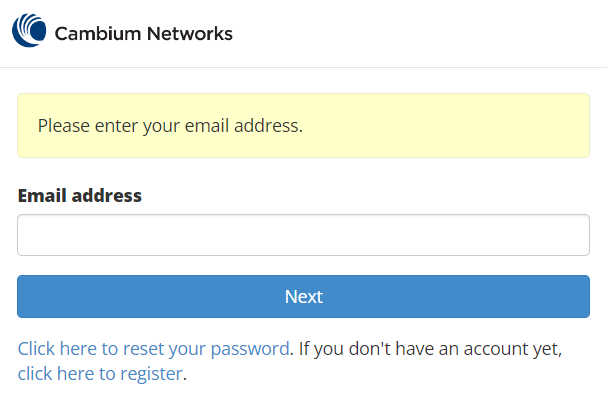 Open a web browser and enter https://cloud.cambiumnetworks.com into the address bar.