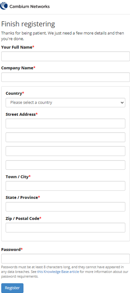 The Cambium ID identifies this account externally. Once created, it can only be changed by contacting Cambium Support. |