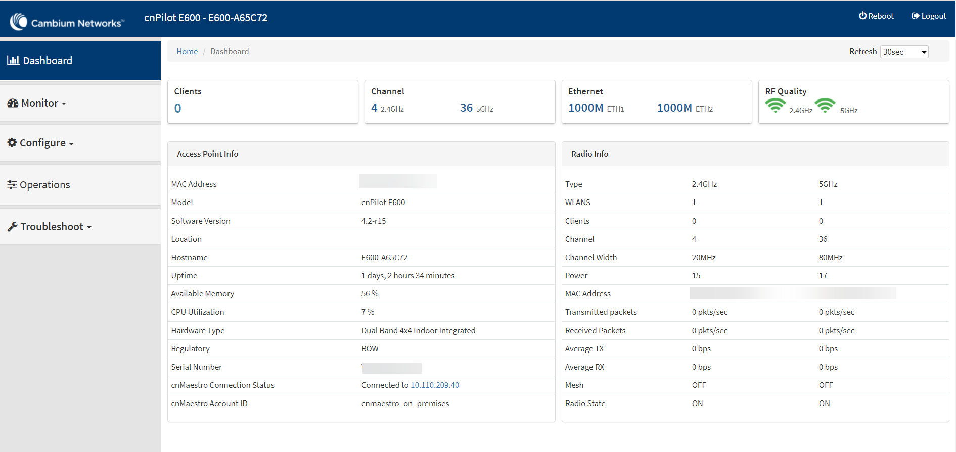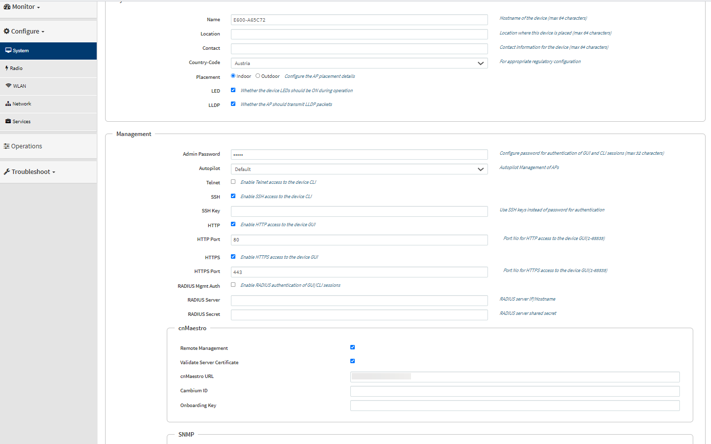 The Cambium ID and Onboarding Key are entered into the Device UI (see the User Guide for the individual devices to determine where; the section below demonstrates the process for cnPilot). Once entered, the Device sends these credentials to Cambium Cloud, where it is mapped to the Onboarding Queue of the Cambium ID account.