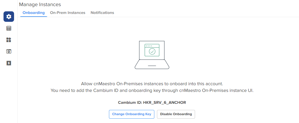 This key needs to be entered in the cnMaestro On-Premises UI to connect to the Anchor Account.