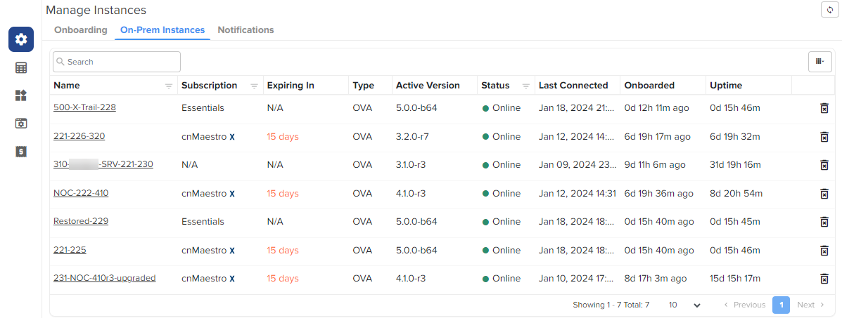 Once the On-Premises server has been onboarded with the Key, it will be included in the On-Prem Instances page. Multiple On-Premises installations can be added to a single Anchor Account.