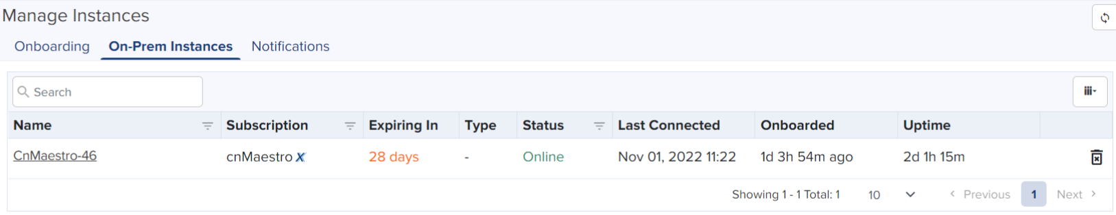 Once the On-Premises server has been onboarded with the Key, it will be included in the Instances page. Multiple On-Premises installations can be added to a single Anchor Account.