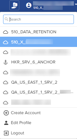 Individuals can belong to multiple Cambium Cloud accounts. To create another Cloud Account (NMS or Anchor), select Create Account from the dropdown in the top-right corner. Enter the ID name in the Search field to filter the particular ID.