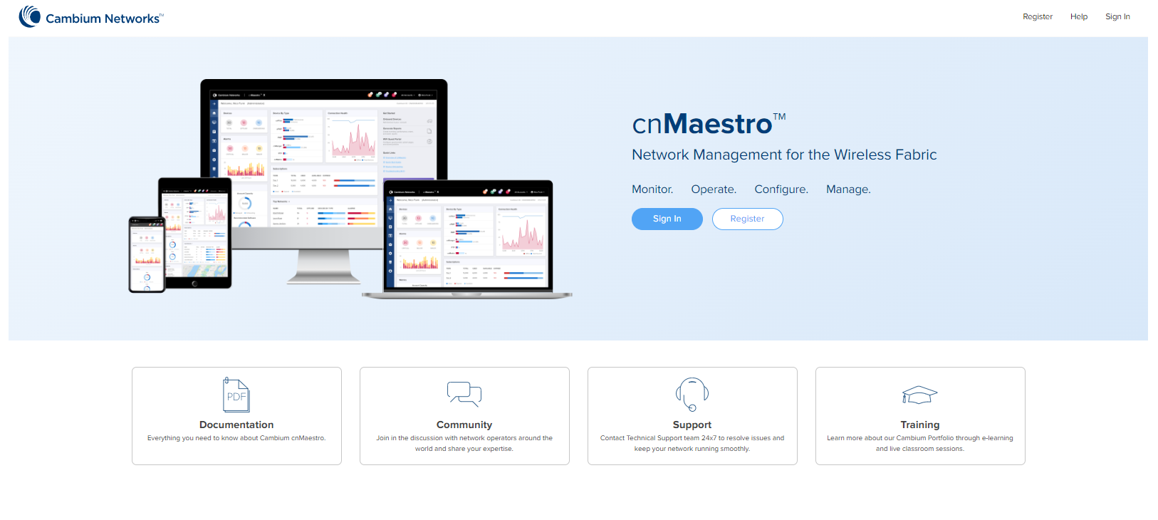 New Cambium Cloud users need to register with Cambium Support Center to create a Support Center ID.