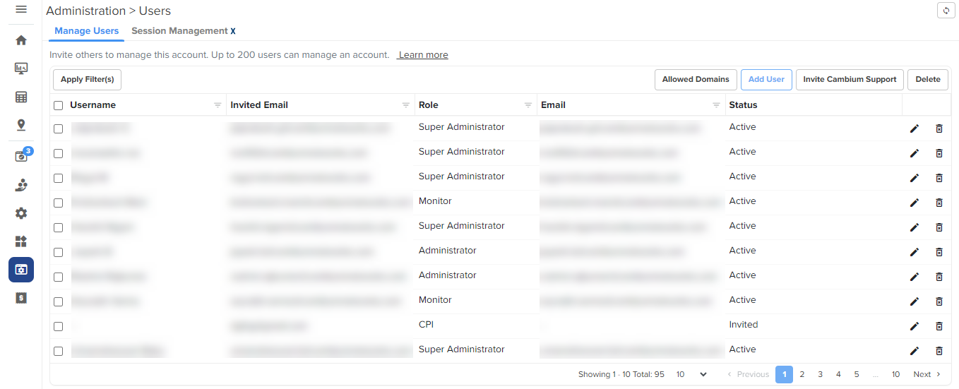 A user can add additional administrators to their cloud management accounts and assign roles such as Super Administrator, Administrator, Operator, Monitor, and CPI.